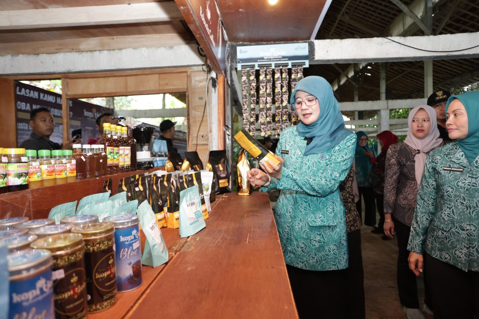 “Ada macam-macam varian kopi, salah satu inovasinya adalah kopi dicampur dengan bubuk avocado. Memang di daerah sini unggulannya ada Camelo dan Avocado,” ujar istri Wagub ini.