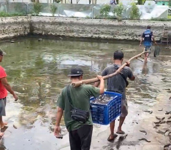 Unit usaha budi daya lele tersebut telah melalui masa pemeliharaan selama beberapa bulan, sebelum akhirnya memasuki masa panen.